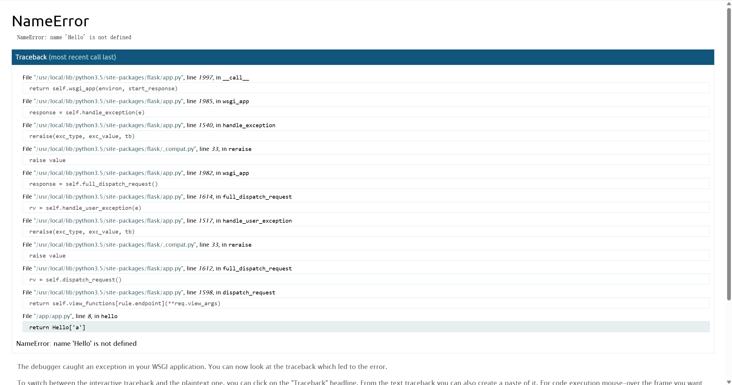 请注意,无论如何,您都不应该在生产环境中使用调试模式,因为错误的堆栈跟踪可能会揭示代码的多个方面。