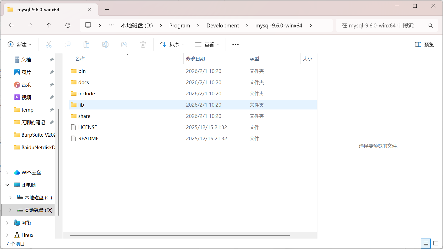 将下载的 ZIP 文件解压到您选择的目录,例如 C:\Program Files\MySQL\ ,这是 MySQL 的主安装目录。